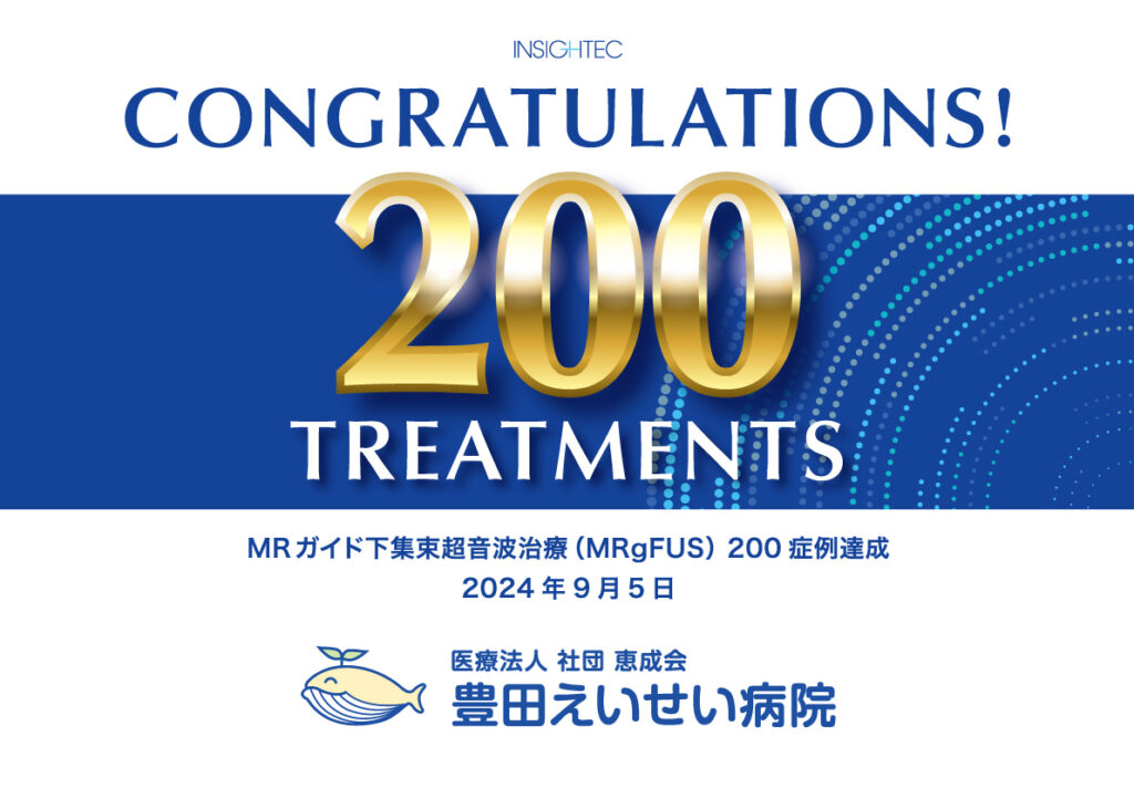 医療法人社団 恵成会 豊田えいせい病院は、2024年9月5日に超音波を活用する治療において、200症例を達成しました。