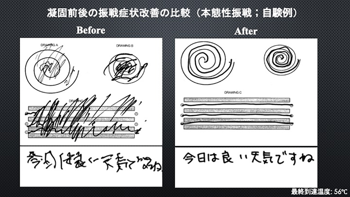 本態性振戦と診断された患者さんが治療前後で書いたもの。