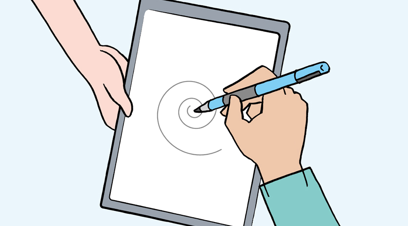 また、下記の画像のような、ペンで線や文字を書く検査を行います。