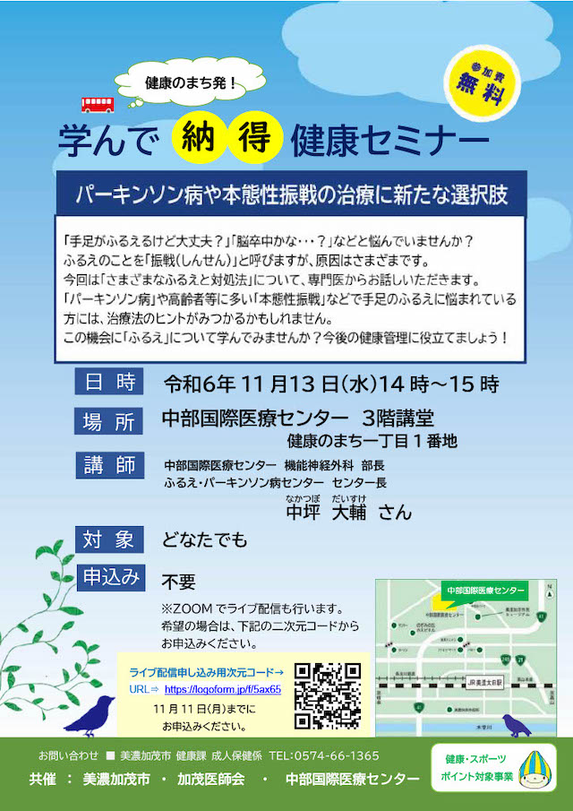 パーキンソン病や本態性振戦の治療について専門医から直接話を聞ける、無料の市民公開講座が開催されます。「ふるえ」にお悩みの方や、ふるえが心配なご家族・ご友人のいる方にもおすすめです。当日はZoomでのライブ配信もございますので、お近くにいらっしゃらない方もお気軽に参加できます。ぜひ、この機会をお見逃しなく!