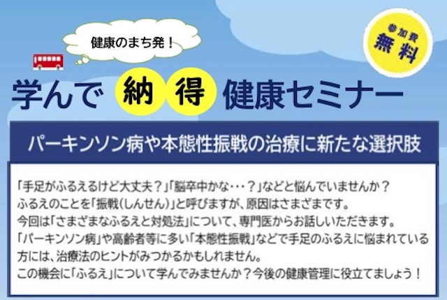 講師を務めた同センターの中坪大輔医師(機能神経外科部長)は、「若い方や軽い症状の方の改善率が良いので、困っているなら、まずはご相談ください」とメッセージを伝えました。紹介状がなくても受診可能とのことです。